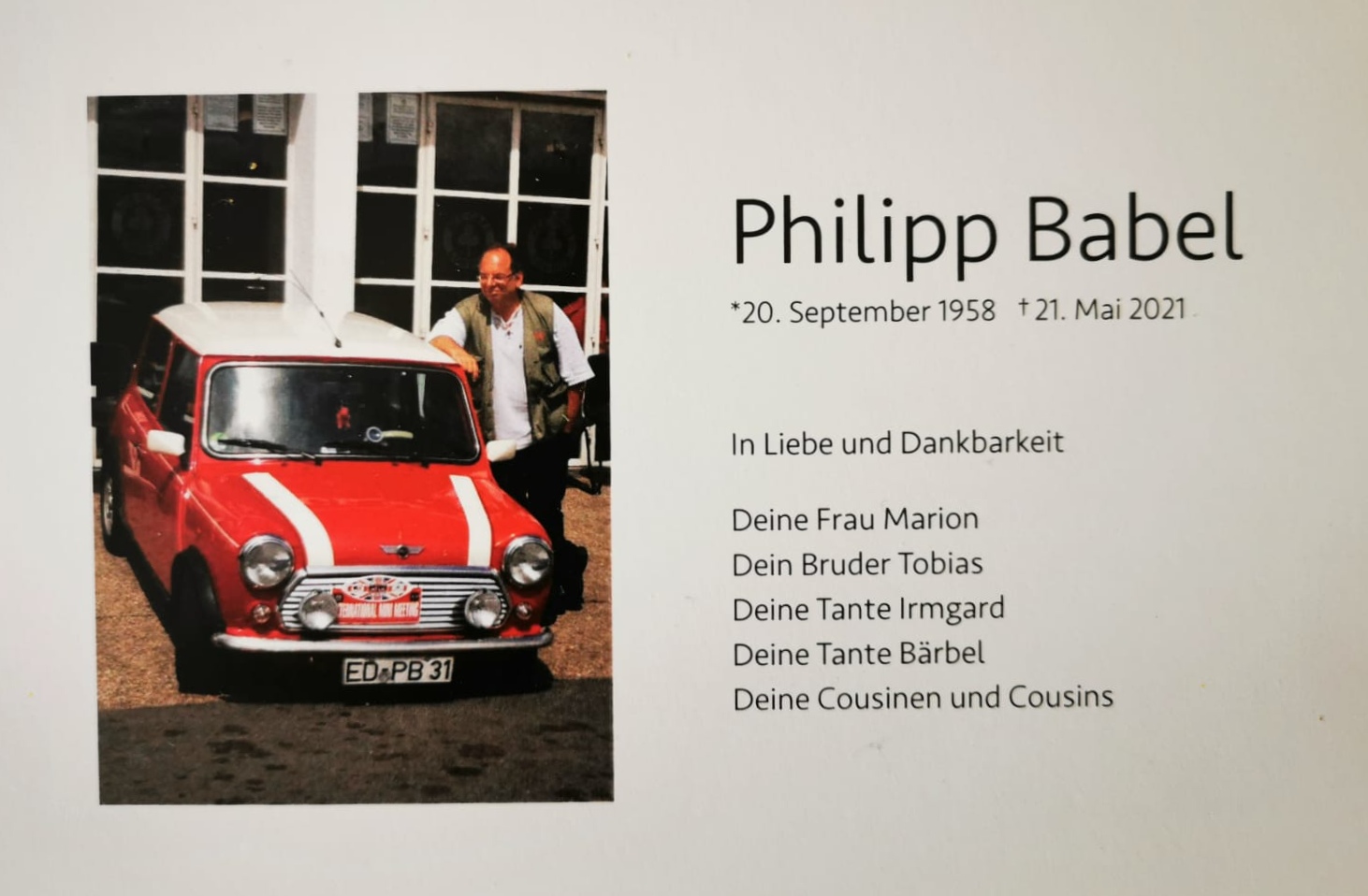 Der Mini Club München trauert um sein Mitglied Philipp Babel, allen bekannt als Philb.