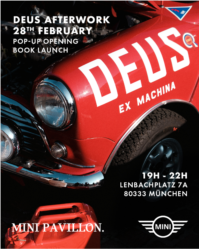 Einladung Afterwork im MINI Pavillon am 28.02 // Eröffnung Pop-Up Store DEUS EX MACHINA Servus beinand Wer Zeit und Lust hat lässt sich das nicht entgehen…. 😉 eisiPS: immer wieder mal auf der Homepage unter z.B. “News” inf […]