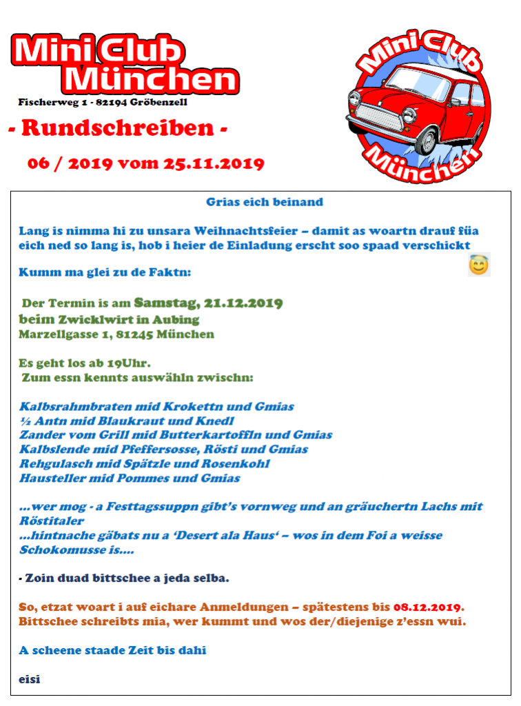 …wie vor kurzem schon angekündigt, hier die Einladung zur Weihnachtsfeier mit den weiteren Details in der Anlage.